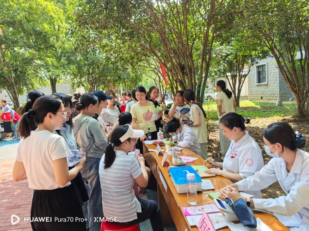 此次活动的顺利开展,离不开多方力量的协同配合。咸宁市红十字会有关部室全程积极行动。咸宁职业技术学院健康管理学院提前一周发动师生参与募捐,组织了30余名师生代表到场,成为活动中的“青春力量”;市妇幼保健院社发部精心挑选经验丰富的医生,携带常用医疗设备参与义诊;市中心血站提前调配献血车与采血团队,确保献血服务高效有序;万年路社区则全力做好后勤保障,不仅清理活动场地、提供电源与桌椅,还提前通过社区微信群、公告栏通知居民,组织了200余名居民参与活动,真正让公益走进“家门口”。