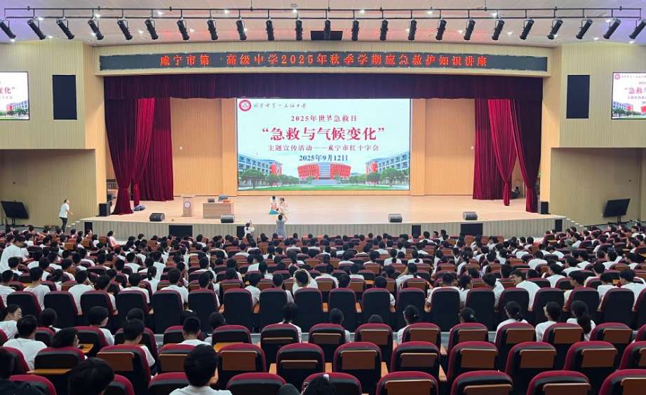 在第26个“世界急救日”来临之际,为提升学生应急避险意识与自救互救能力,9月12日,咸宁市红十字会组织优秀救护师詹梦窈为咸宁市第一高级中学800余名高一新生带来一场应急救护培训。