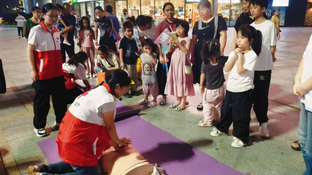 夜幕低垂,华灯初上。志愿者们早早来到活动现场,身着红十字马甲,带着满腔热忱和专业素养,将心肺复苏(CPR)、海姆立克急救法等关键急救技能传授给过往的市民朋友们。
