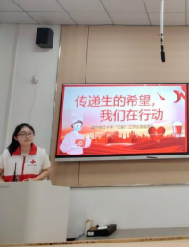活动重头戏是湖北科技学院副教授汪娟,带来造血干细胞知识科普。汪娟老师从造血干细胞的来源讲起,细致地介绍了造血干细胞捐献的条件、流程,还生动形象地用比喻为非医学专业的同学们讲解捐献流程、对身体的影响以及后续身体恢复情况,让大家对造血干细胞捐献不再陌生,不再畏惧。汪老师的讲解深入人心,也让大家深刻认识到,捐献造血干细胞并非遥不可及,它可以是我们每个人都能参与的、传递温暖的善举。最后,一段造血干细胞捐献流程说明视频,更是让大家对捐献有了更加立体、深入的了解,呼吁大家积极考虑加入中华骨髓库。
