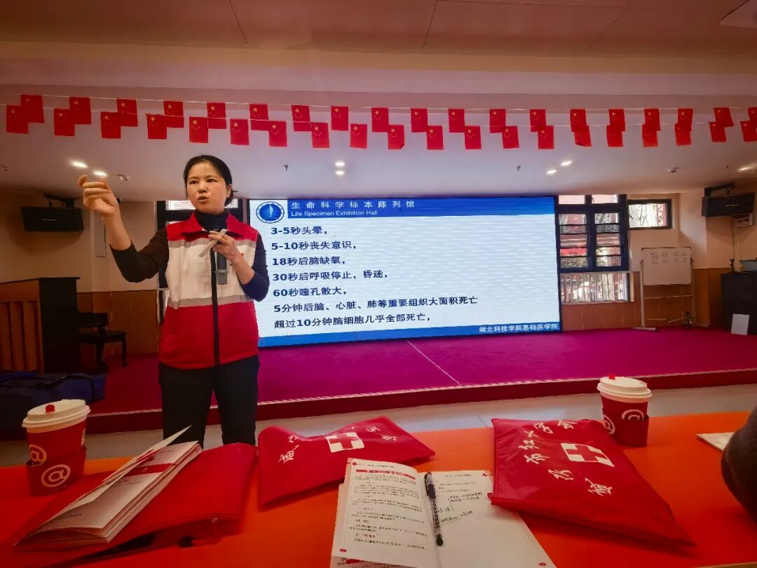 此次培训紧扣“实用、实战、实效” 原则,参照《红十字应急救护培训标准化手册》设置 8 学时课程,涵盖红十字运动与救护概论、心肺复苏(CPR)、AED 使用、创伤救护及气道异物梗阻处置等核心内容。咸宁市红十字会资深讲师团队采用“理论精讲 + 示范教学 + 分组实操 + 情景模拟” 模式,将专业知识转化为实用技能。理论授课中,讲师结合旅游场景常见的游客跌倒、创伤出血、心脏骤停等突发情况,详解应急救护核心原则与操作程序,让学员吃透实操关键要点。