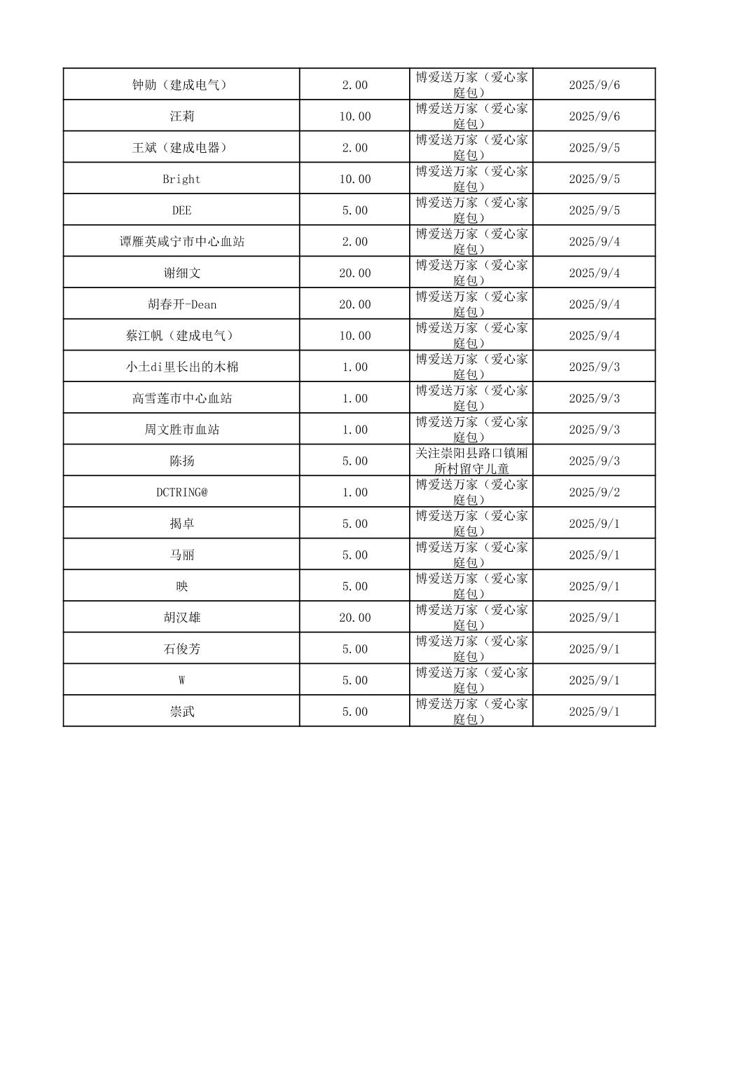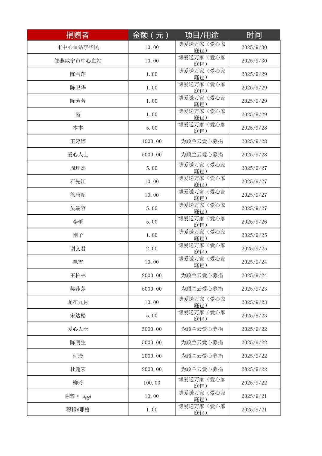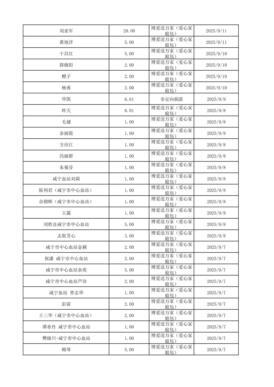 咸宁市红十字会2025年9月份接收捐赠情况公示