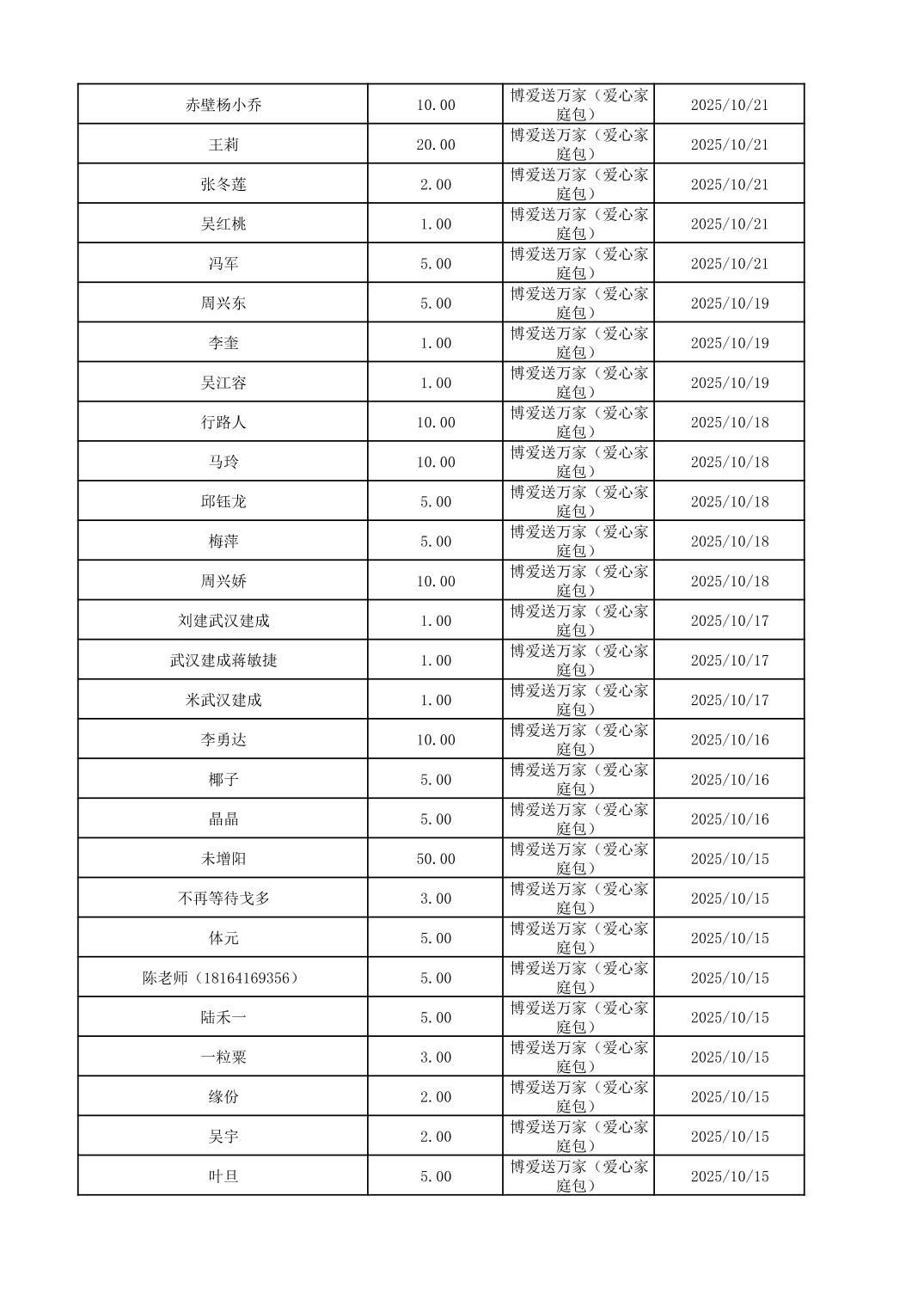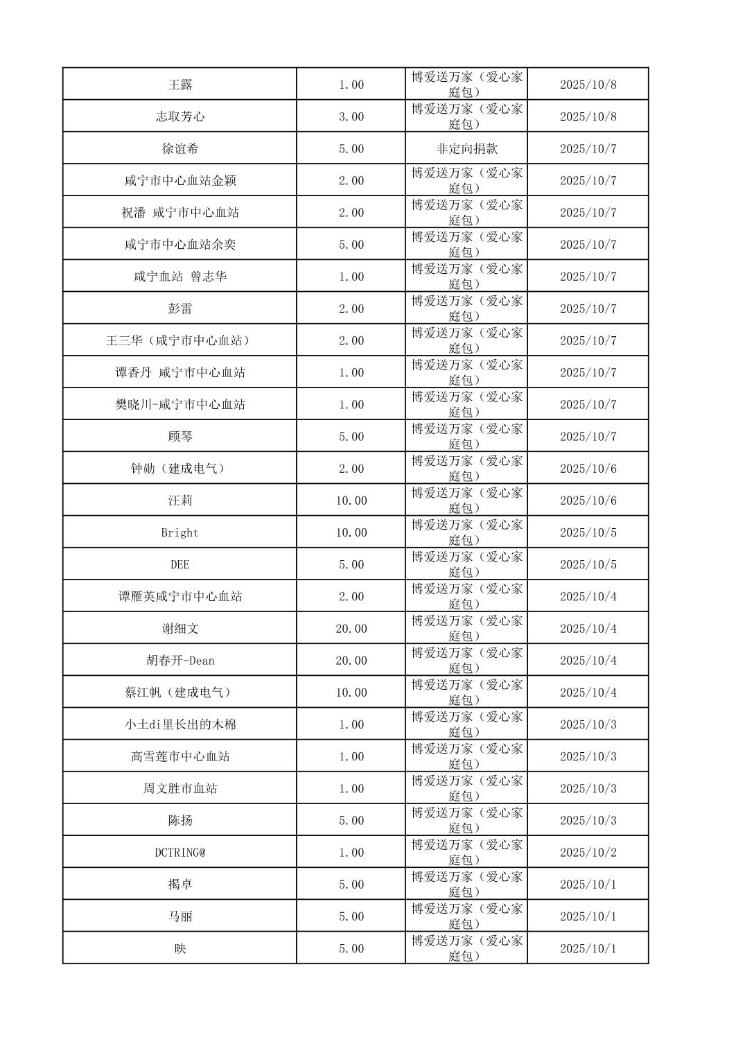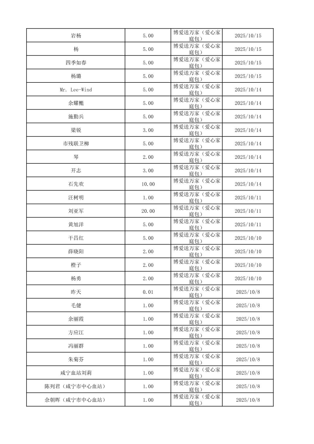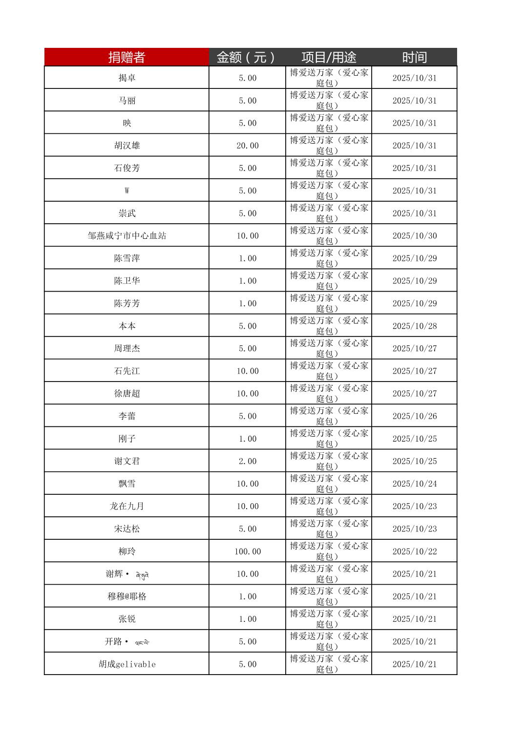 咸宁市红十字会2025年10月份接收捐赠情况公示