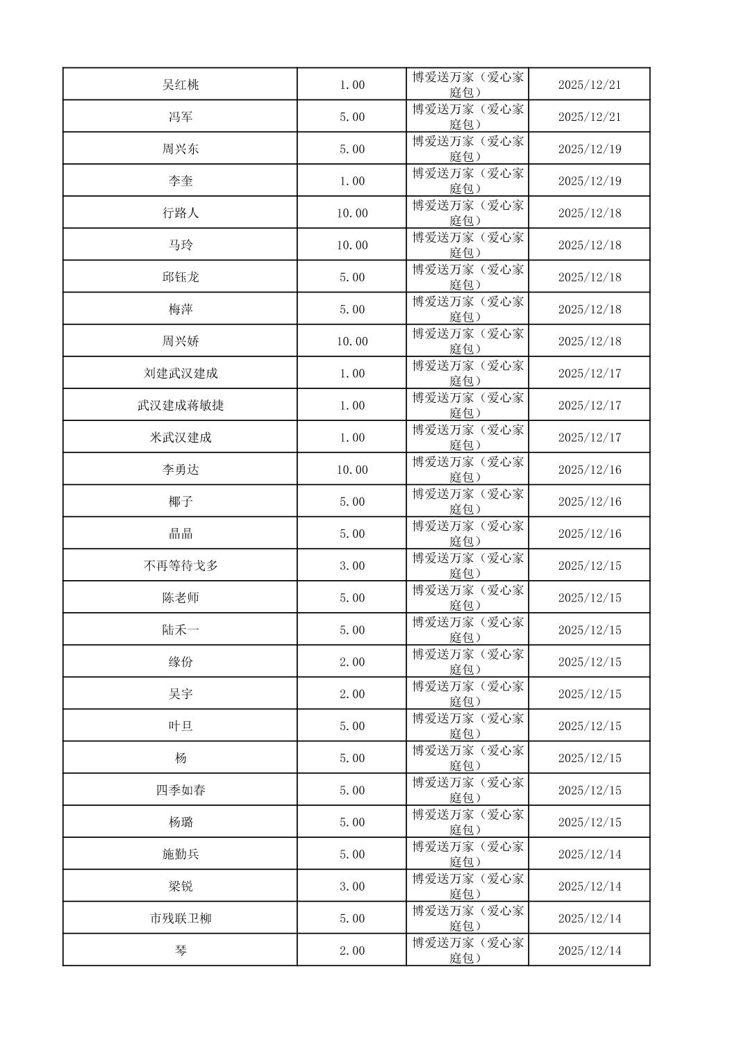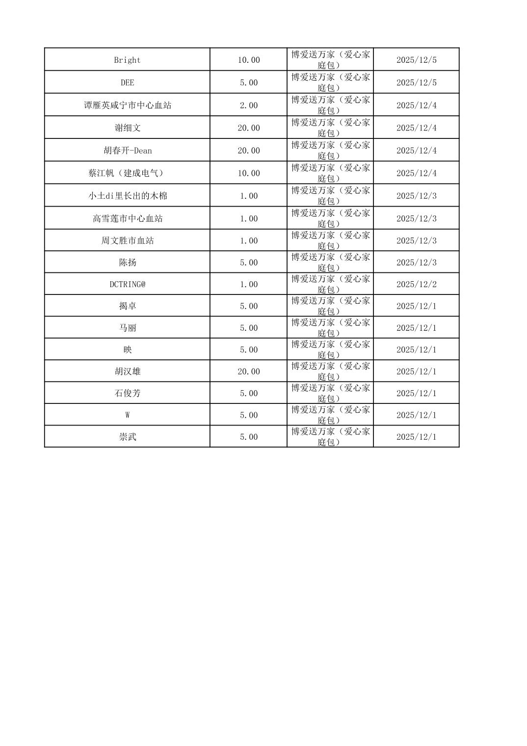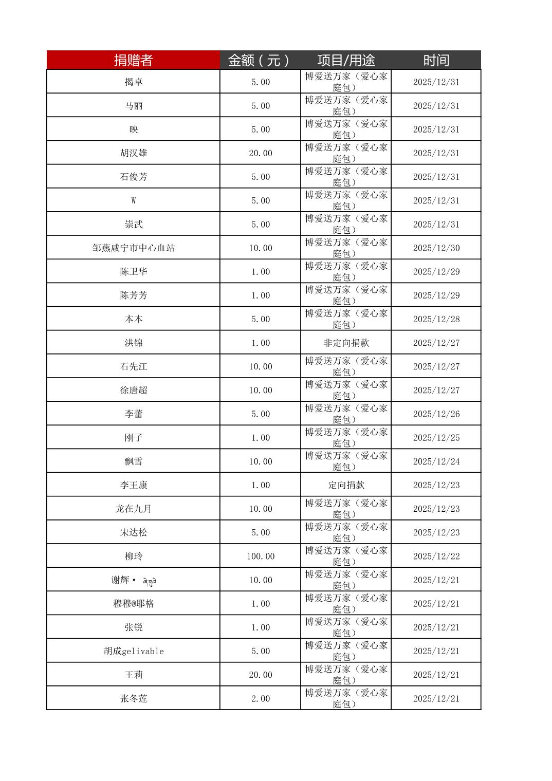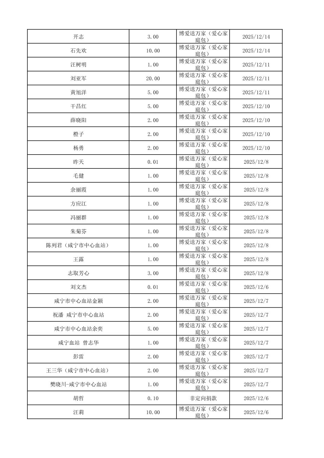 咸宁市红十字会2025年12月份接收捐赠情况公示