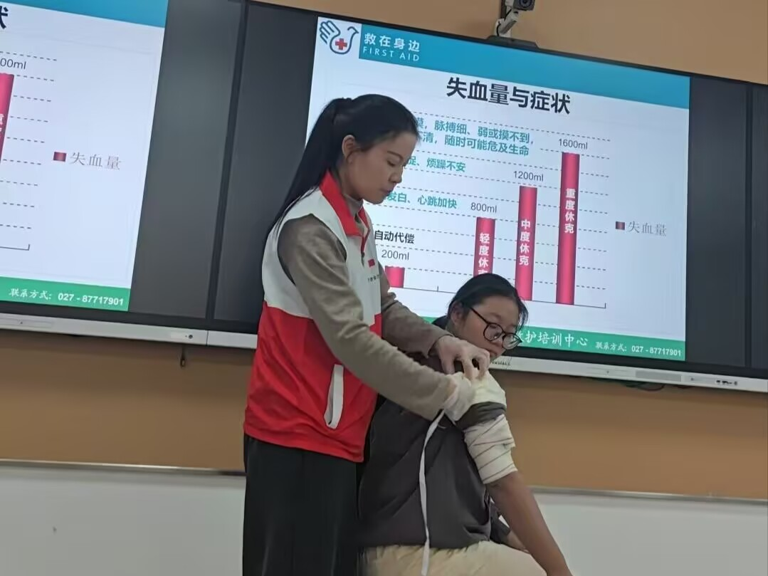 湖北省应急救护师资詹梦窈围绕心肺复苏、创伤急救、气道梗阻处理等核心内容展开系统教学。重点讲解了心肺复苏的适用人群、心搏骤停处置要点、操作规范及自动体外除颤仪(