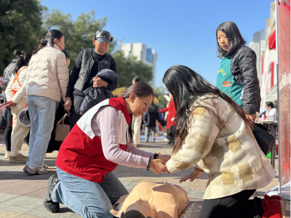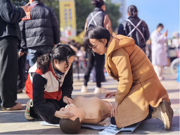 通过现场示范,互动教学等形式向公众普及心肺复苏,创伤处理等急救技能,吸引了许多观众驻足学习,现场气氛热烈而有序。