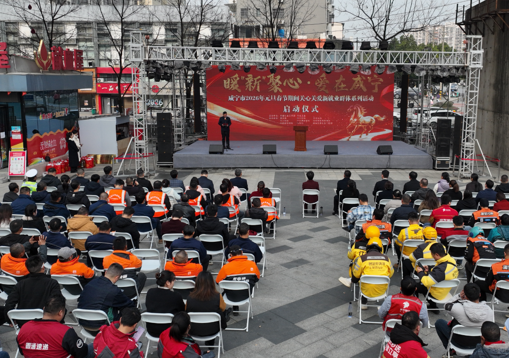 寒风虽冷,温情正浓。1月16日上午10时许,咸宁万达商圈广场上红色展板矗立、暖心标语高悬,一场以“暖‘新’聚心·爱在咸宁”为主题的关心关爱新就业群体系列活动启动仪式在此温暖启幕。来自快递、外卖、货运、网约车及网络直播等行业的160名代表,与相关部门负责人齐聚一堂,在2026年春节来临之际,共同见证这座城市的温度与诚意。