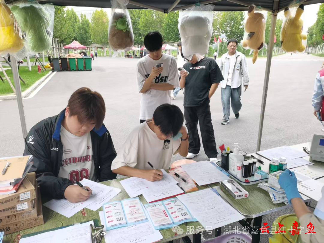 9月23日,嘉鱼县红十字会联合咸宁市中心血站在武汉东湖学院嘉鱼教学改革基地开展为期三天的2025年红十字青少年活动月活动。以流动献血车为核心服务载体,红十字会志愿者通过“三献”展板展示、发放科普手册等形式,向过往师生普及“三献”知识。
