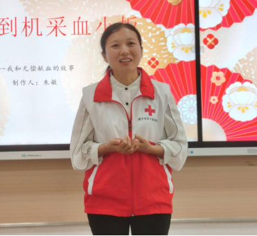 活动最后,朱敏分享了自己的无偿献血经历。从第一次的些许顾虑,从2022年9月30日第一次献血,现在已献血十四次,每一次她都笑容满面。她用自己的亲身经历告诉大家,无偿献血是一件既帮助他人,又能让自己收获满满的事,鼓励大家都能加入无偿献血的行列中来。